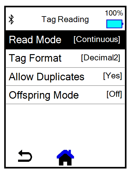 The RFID scanner Green scanner icon icon at the top left side of any screen in the mobile app shows the current connection status: a green icon Green scanner icon indicates that the scanner is connected and a red icon Red scanner icon indicates that the scanner is not connected. On the More tab, tap RFID Scanner to pair a device with the mobile app.