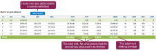 - The Total row at the bottom of the table shows how much milk (TOTM