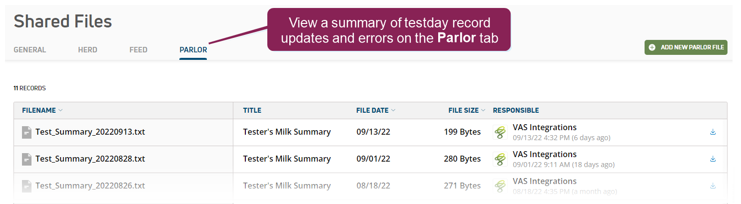 - This file creates a preliminary testday record in PULSE. After the import completes, you can view a brief summary of testday record updates and errors by selecting Dairy > Shared Files and then the Parlor tab.