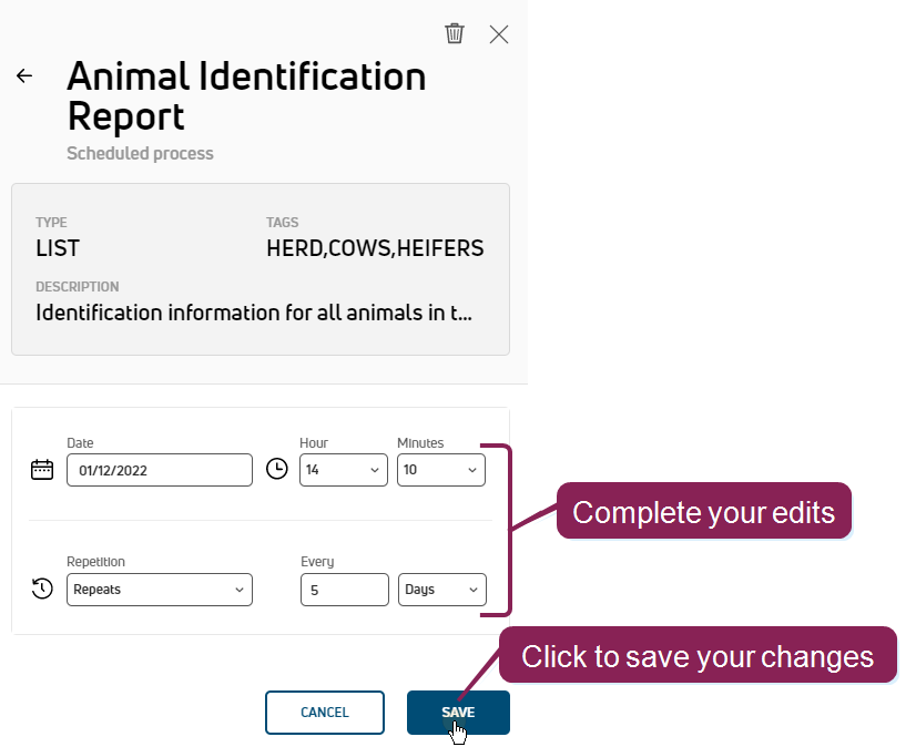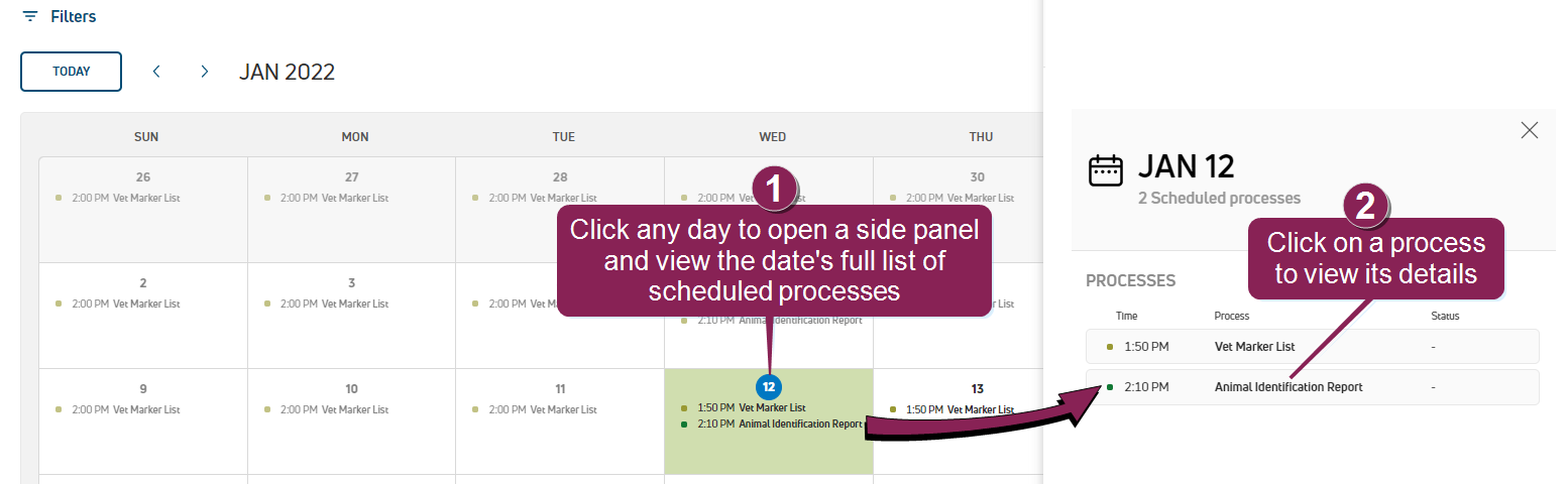 Expand the topics below to learn more about scheduling and managing the processes that are included in your calendar on the Process Scheduler page. You can schedule future processes or edit or delete current processes: