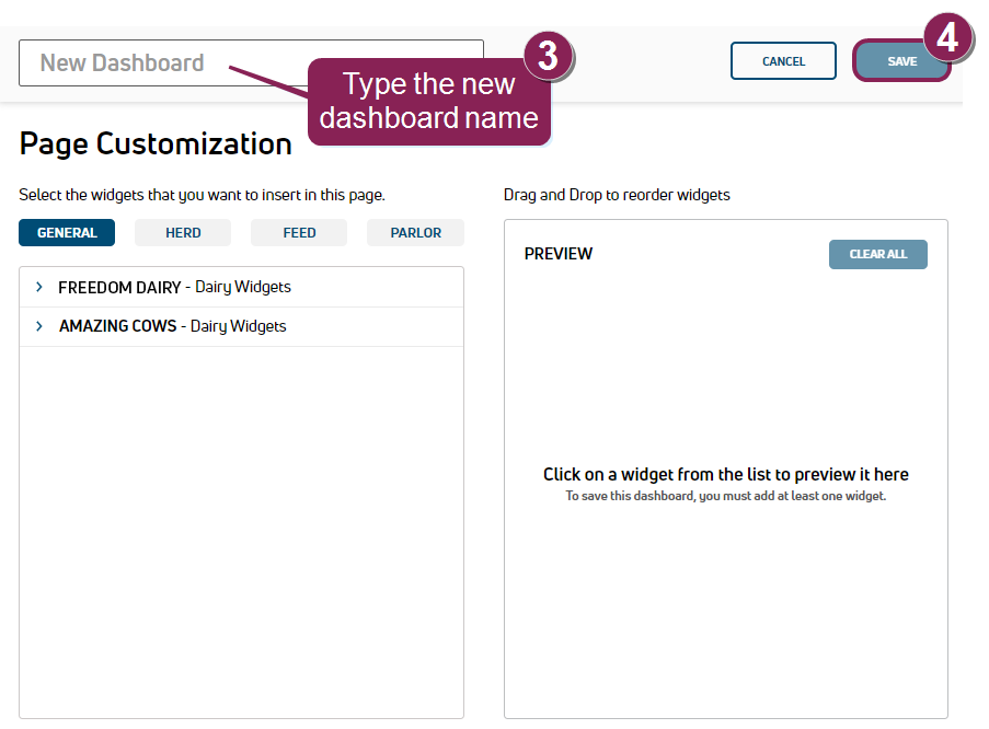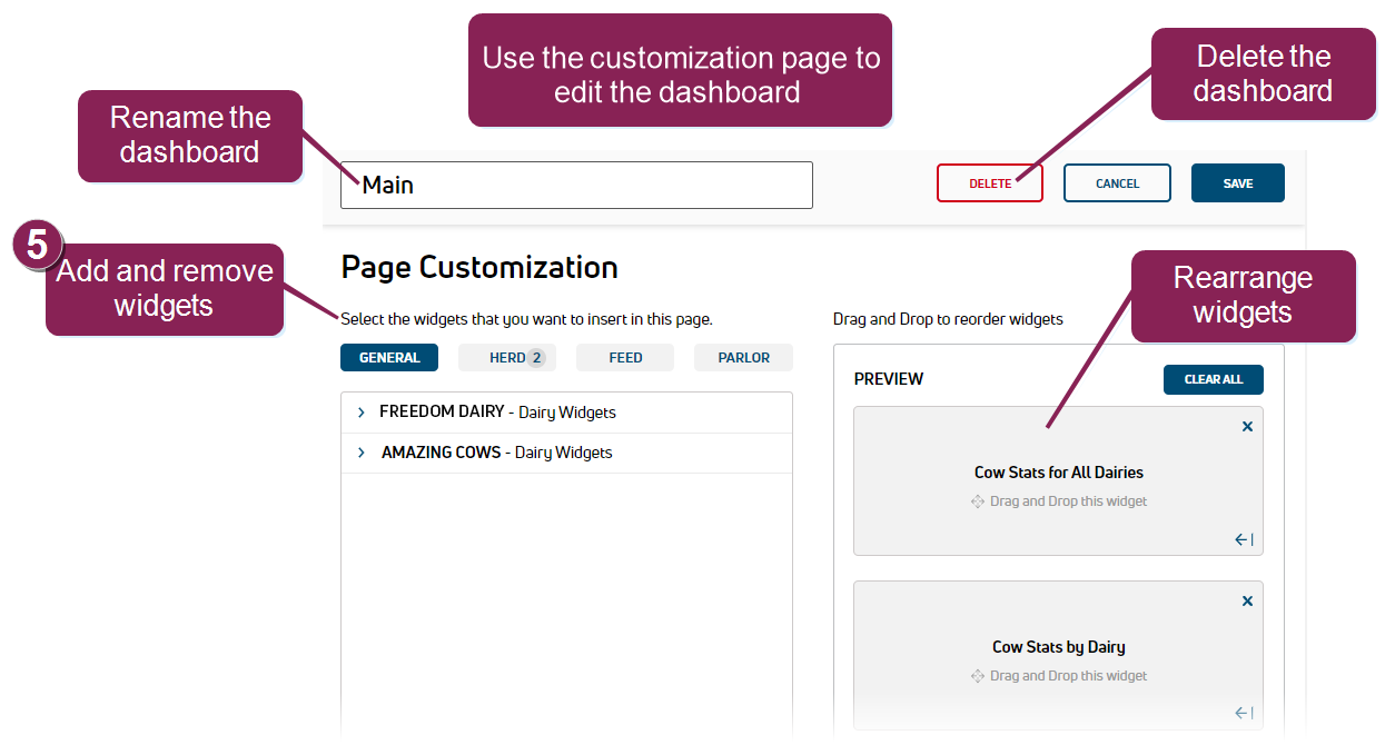 Only users who are assigned to a Role with Dashboard Management permissions can use this feature. See Edit Dairy User Permissions and Manage Dairy Roles for more information.