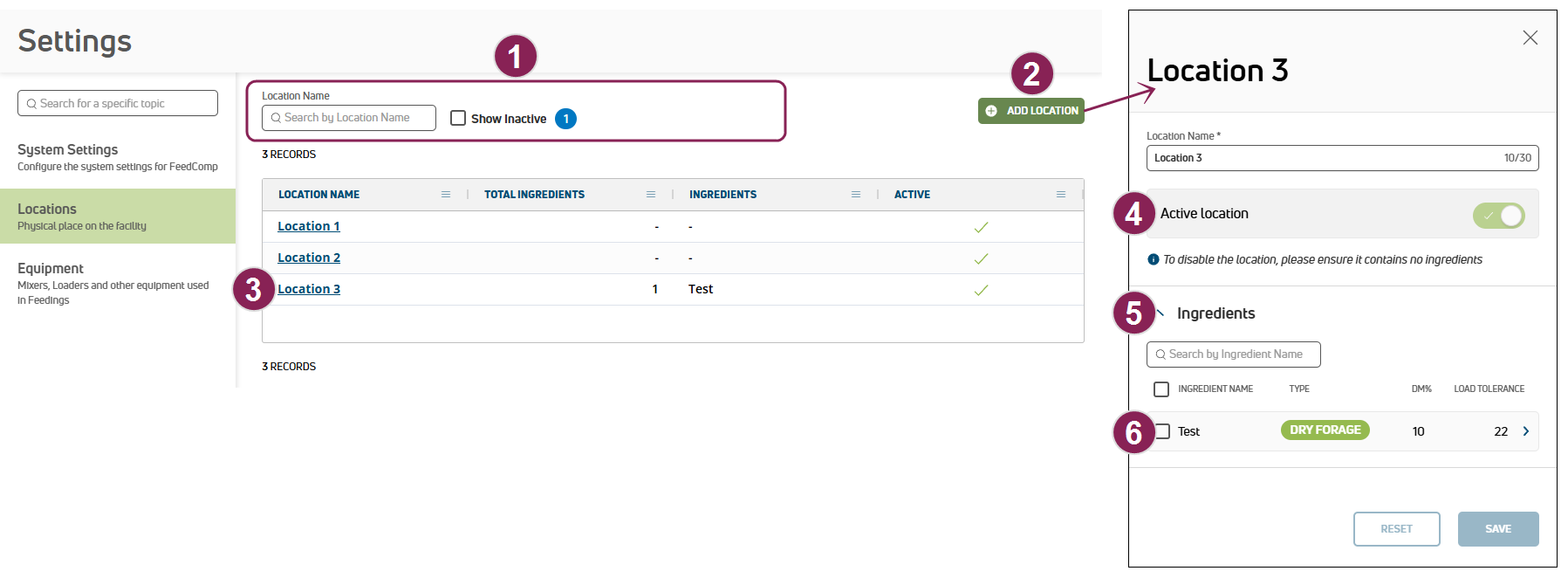TIP: You're currently viewing online help for locations in FeedComp on PULSE. Click here to see online help for locations in the FeedComp mobile app.