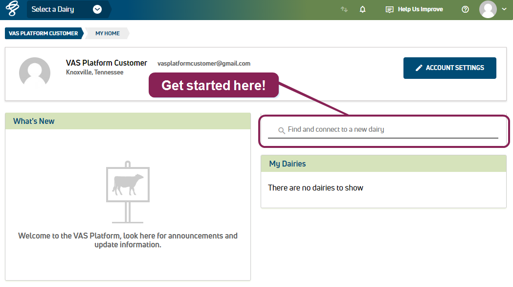 You may not see much the first time you log in because you must have access to at least one dairy to use PULSE. You can use the search field to find and connect to a new dairy.