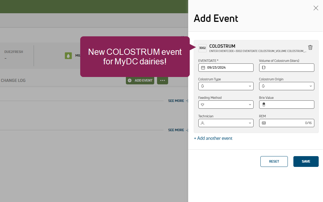 Colostrum replacer is a natural or synthetic product that provides nutrients and antibodies to calves when maternal colostrum is unavailable or of poor quality. It's often used when calves don't nurse from their mother within a few hours of birth. is one of the most critical activities that support the long-term health and well-being of your herd. We added the COLOSTRUM event to make capturing and tracking your colostrum activities easier and more consistent. See COLOSTRUM Event (MyDC only) to learn more!
