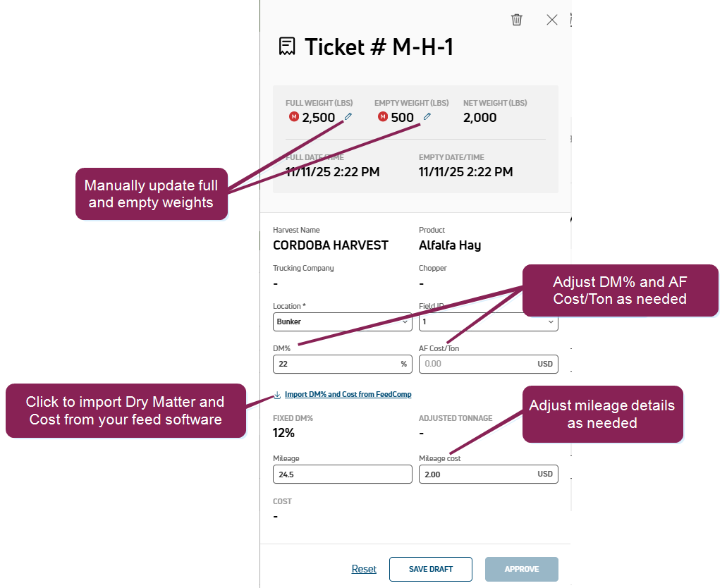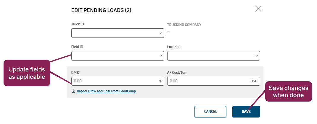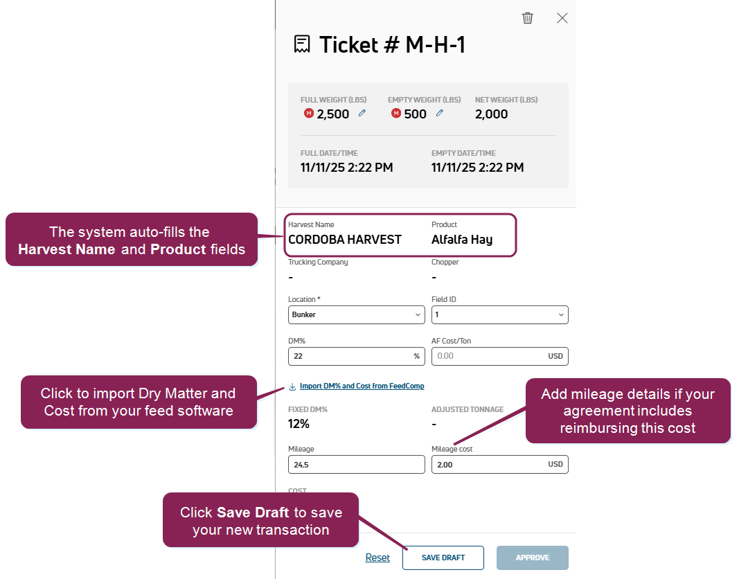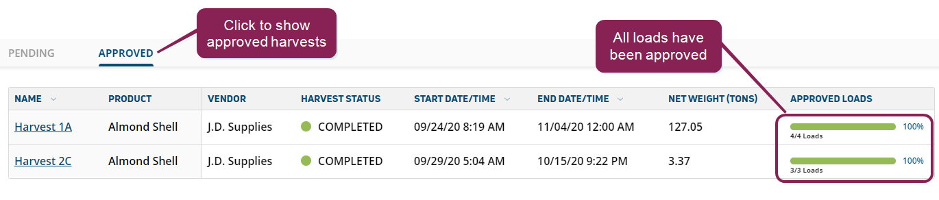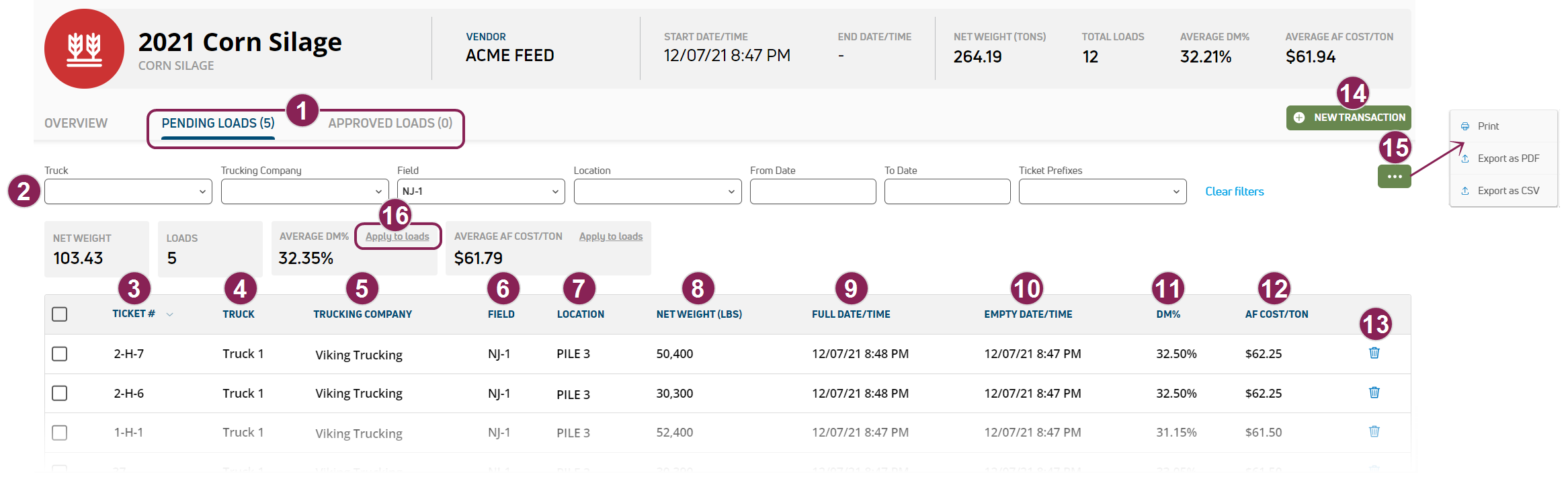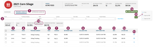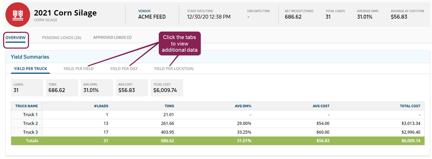 The Harvest Management feature allows you to manage all of your dairy's harvests. Each new harvest is created in the WeighComp app, and data for each harvest load is captured on the app by a scale attendant. The harvest can then be viewed and managed in PULSE.