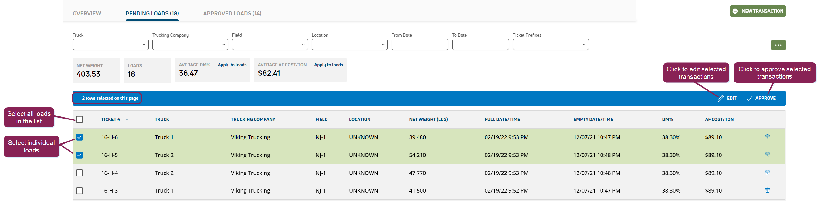 TIP: Amounts are displayed in pounds or kilograms based on the unit of measure specified for your user account.