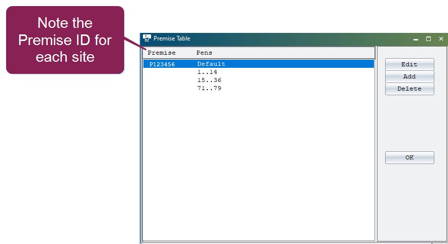 Identifier for each site. Use the ALTER > Define Premises Table option in DairyComp 305 to view all Premise IDs.You will need the Premise ID for each Cubex database to complete the required Premise Mapping tasks.